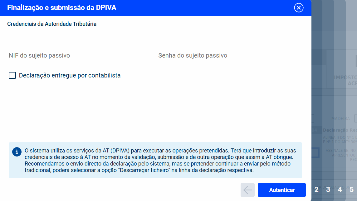 Após a submissão da Declaração Periódica, o programa sugere o encerramento em IVA, com data do último dia do mês/trimestre submetido. Nas opções adicionais, no canto superior direito, para além de ser possível marcar a declaração como submetida externamente, é também possível descarregar a declaração em formato .xml, que permite a submissão da Declaração na aplicação online da DPIVA do Portal das Finanças, ou em PDF.